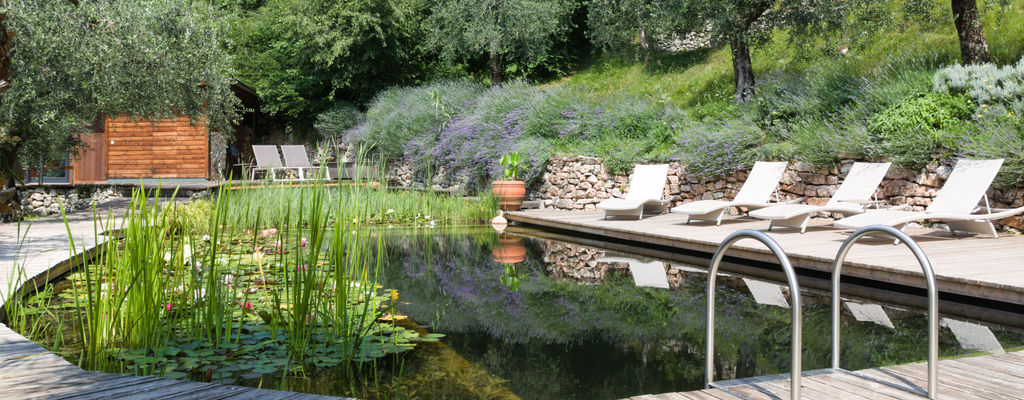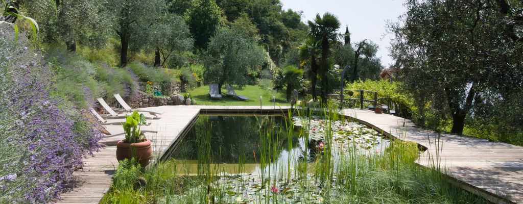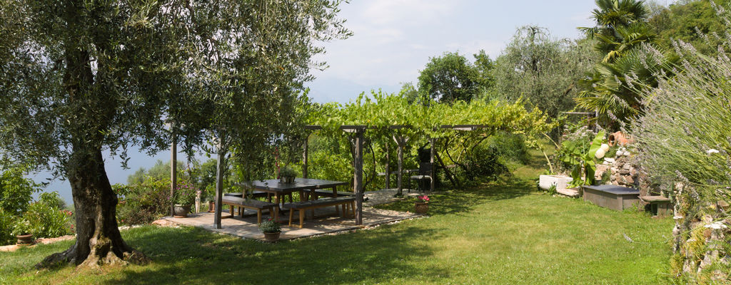 Großer Naturteich Feuerstelle vor dem Haus Außenküche mit Napoleon Grill Finnische Sauna mit Ruheraum Beheizbarer Whirlpool Gäste Kräutergarten Mehrere Esstische und Sitzgelegenheiten Tischtennis Der Garten der Villa erstreckt sich über mehrere Hektar. Alles was wächst und blüht wird hier liebevoll von den Besitzern Norbert und Hildegard angepflanzt, gehegt und gepflegt. Zwischen einheimischen Oleandern und wilden Orchideen findet man so manche exotische Pflanze, wie einen Bananenbaum, Ananasguave, Mönchspfeffer, Goji Beerenstrauch und sogar chinesische Datteln. Erkunden Sie den vielfältigen Garten und lassen Sie sich überraschen von der Vielfalt und Farbenpracht der Natur! NATURTEICHDer Naturteich ist der Treffpunkt im Garten. Er lädt ein an seinen Ufern zu entspannen und das frische Quellwasser bietet sich für eine Abkühlung an heißen Sommertagen an. Der Naturteich funktioniert ganz ohne Chemie und ermöglichen ein Wellness Erlebnis der besonderen Art. Das Wasser wird von den zahlreichen Wasserplanzen im getrennten Regenerationsbereich gereinigt, vom Kalk befreit und mit Sauerstoff angereichert. Dieses weiche Wasser ist besonders sanft zu empfindlicher Haut und reizt die Augen nicht. OLIVENBÄUMEÜber 80 Olivenbäume sind über das ganze Grundstück verstreut. Einigen der uralten Olivenbäume sieht man die Last der Jahre an, so gekrümmt und verdreht stehen sie da. Doch noch immer sind sie majestätisch schön anzusehen. Im November jedes Jahres beginnt die Olivenernte. Für eine ganze Woche helfen die Familie, Freunde und Gäste mit die wertvollen Früchte zu sammeln, aus denen das flüssige Gold, das echte Olivenöl vom Gardasee, gewonnen wird. GALERIEAußerordentliche BergVilla mit liebevollen Gastgebern